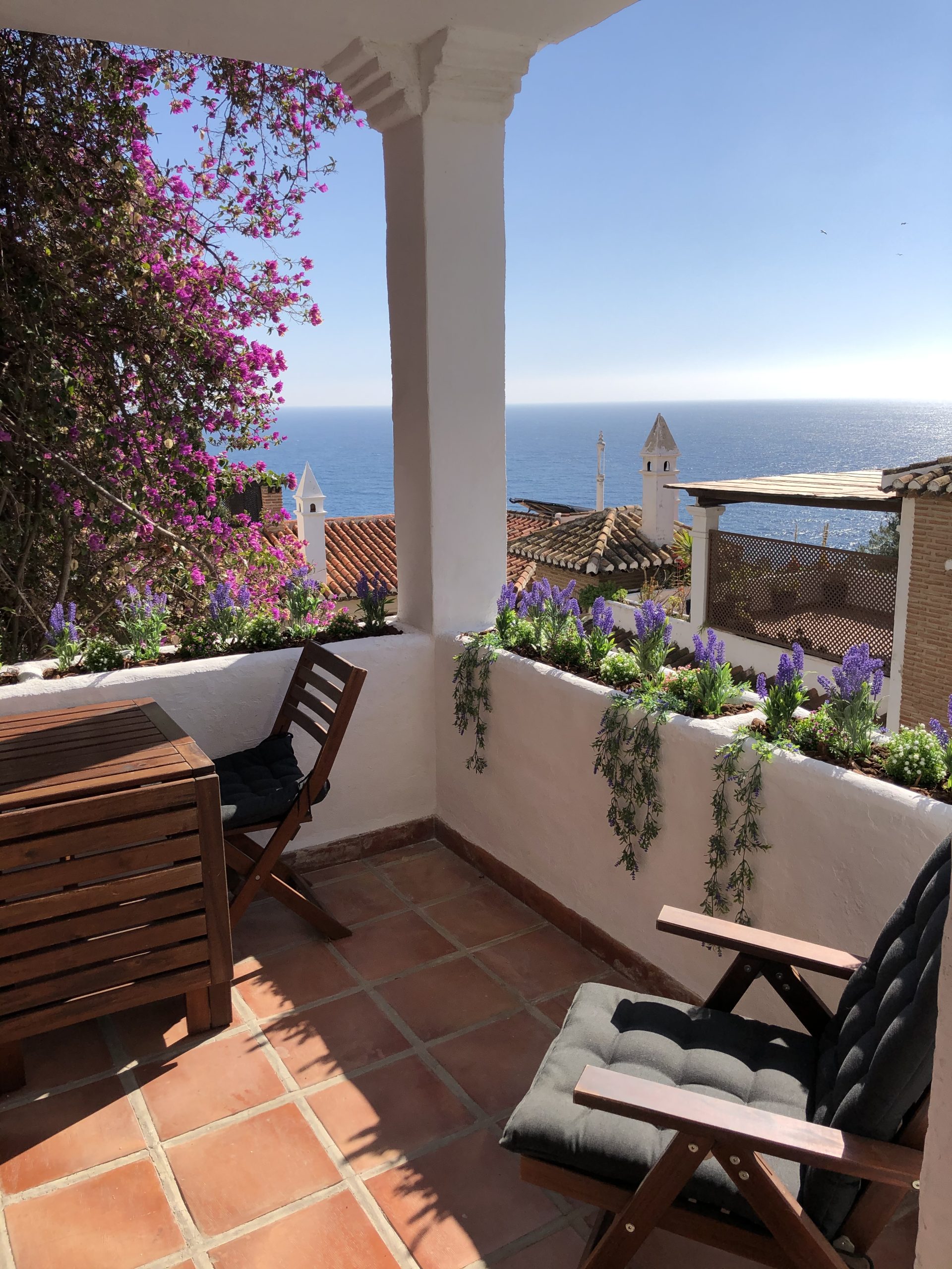La Aldea is a fully equipped self-catering house which sleeps 4 people and it’s situated in an exclusive area of Punta de la Mona in La Herradura. It’s made up of a quaint little cul-de-sacs, with narrow, slightly steep roads leading to each unique house and surrounded by colourful flora. It’s these things which give it it’s name, “Punta de la Mona” (Point of Beauty). The area is quiet, peaceful and very relaxing with friendly neighbours. La Aldea is a little paradise and a chance for escapism.